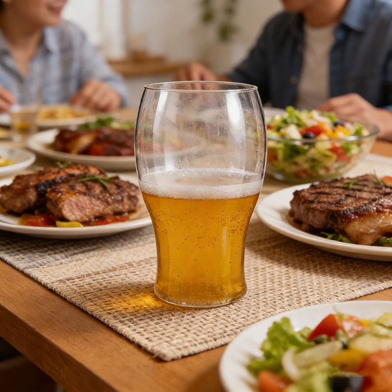 Capacité idéale de 35 cl (12 oz)Le format classique de 35 cl est idéal pour les bières standard, les bières artisanales, les cocktails ou les grandes portions de boissons sans alcool. Sa large base stable empêche le verre de se renverser sur les tables occupées ou les surfaces irrégulières, tandis que son bord lisse et arrondi assure une prise en main confortable.