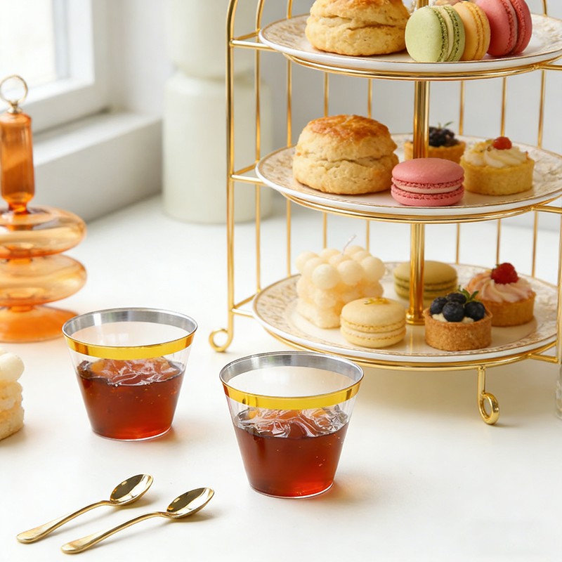 Design élégant à bordure doréeCorps transparent comme du cristal avec un liseré doré brillant, une apparence élégante et haut de gamme pour sublimer la décoration des tables lors de mariages, de fêtes et d'événements formels.