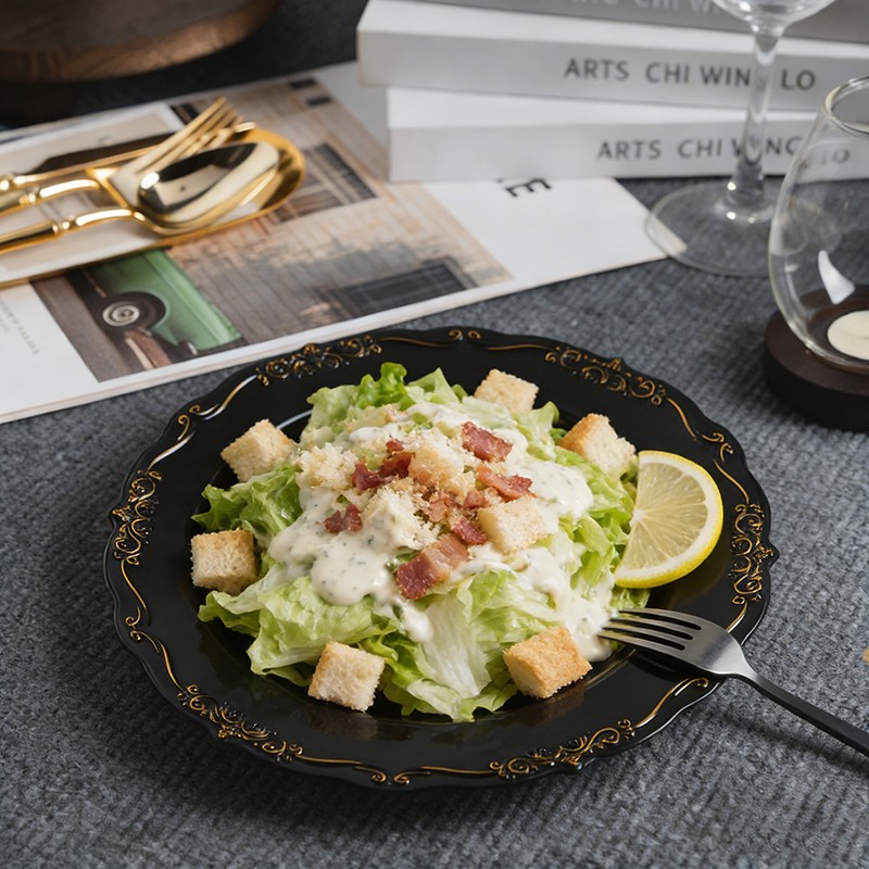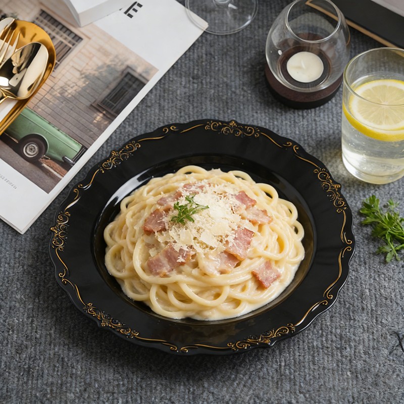 Leur base noire classique, rehaussée d'un liseré doré brillant, s'harmonise avec tous les types de nappes, de centres de table floraux et de décorations, des mariages minimalistes et modernes aux galas traditionnels d'inspiration royale. Ces assiettes sont également parfaites pour les soirées à thème, les dîners du Nouvel An et les célébrations d'anniversaire.