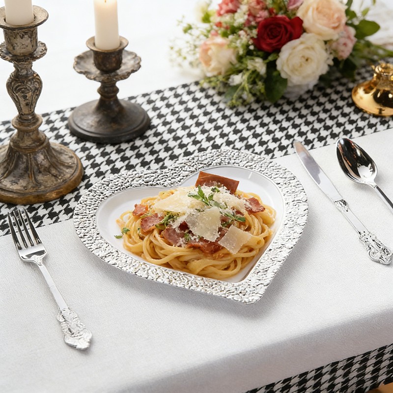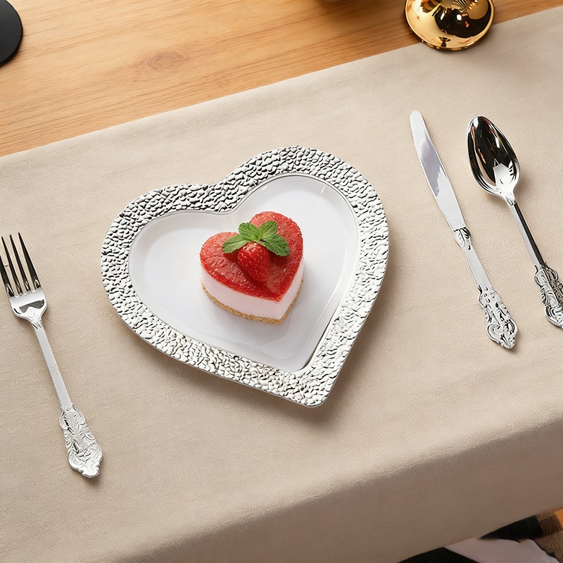 Texture martelée élégante: Crée un chatoiement subtil et lumineux qui rehausse l'aspect luxueux de l'assiette.