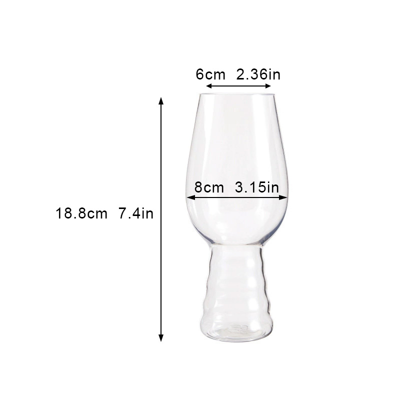 H18.8cm*W8cm*6cmCapacité ultra généreuse de 532 ml (18 oz)Le grand format de 532 ml (18 oz) est parfait pour les grandes quantités de bière, les cocktails à partager, les verres de vin ou même les dégustations de tequila avec du sel et du citron vert.