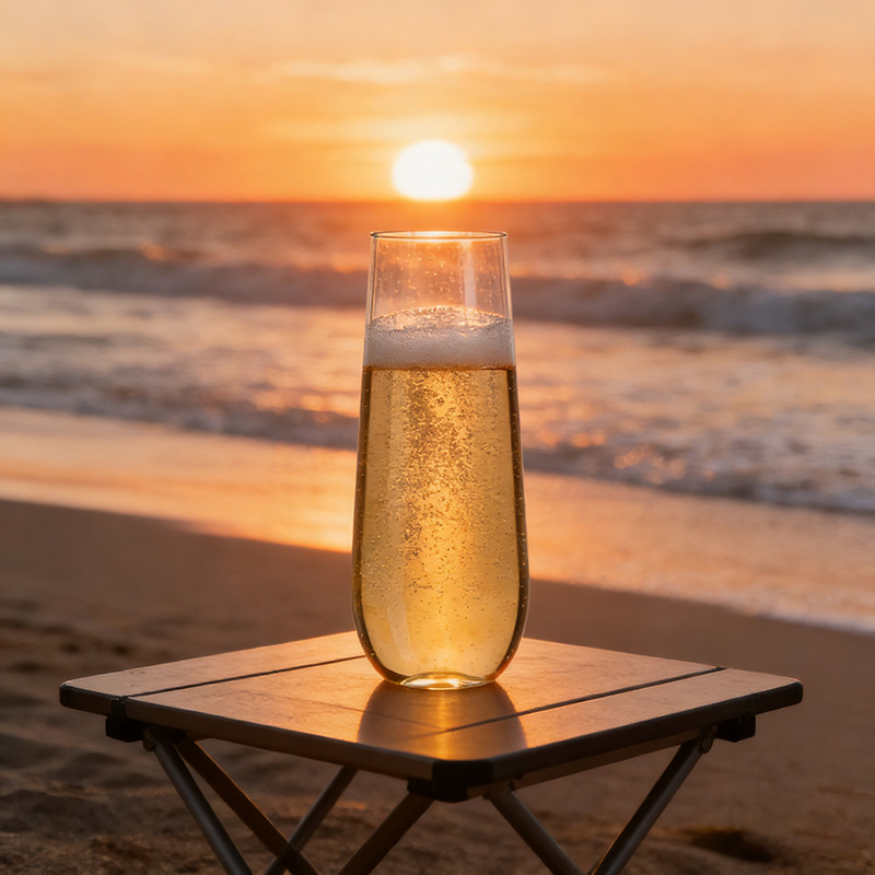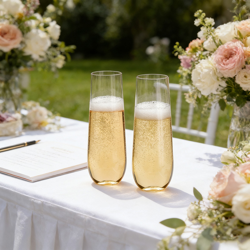 Stabilité sans tigeLeur pied discret et sans tige les empêche de se renverser sur les tables encombrées ou les surfaces irrégulières, tandis que leur forme ergonomique offre une prise en main confortable – idéale pour les longues célébrations. Légères et robustes, elles sont faciles à transporter pour les événements en extérieur ou les voyages.