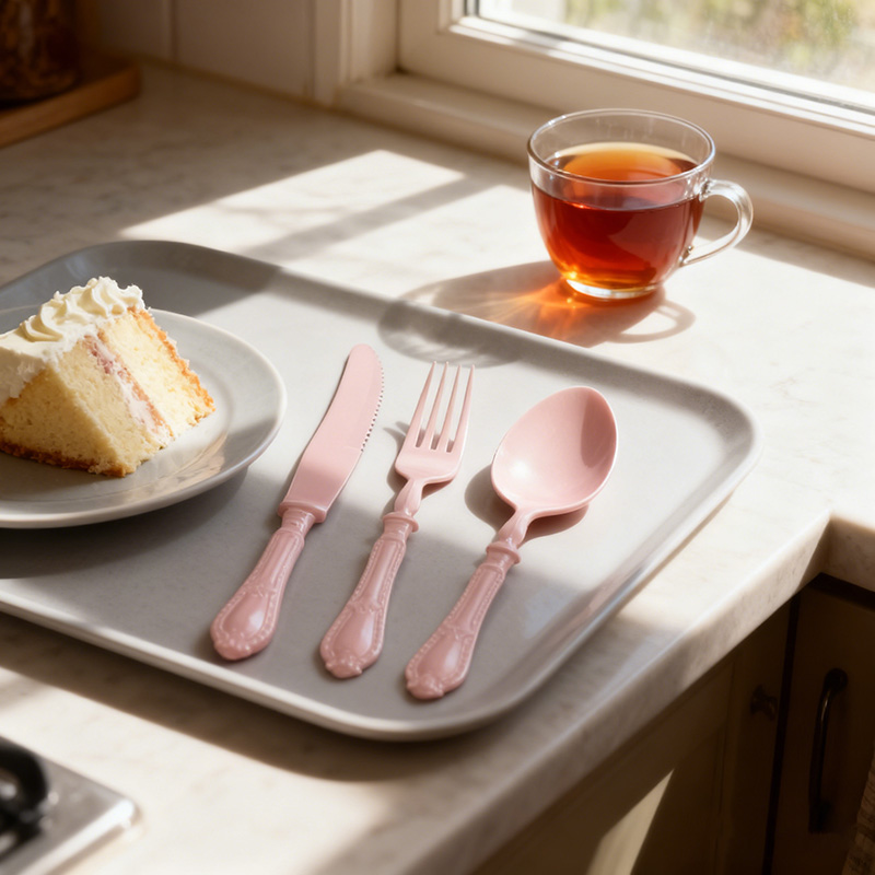 Conception fonctionnelle pratique : Le couteau tranche sans effort les gâteaux et les amuse-gueules, la fourchette pique fermement les fruits et les salades, la cuillère sert les sauces et les desserts avec aisance – convenant aux invités de tous âges.