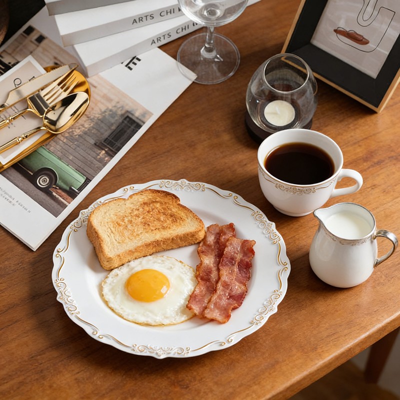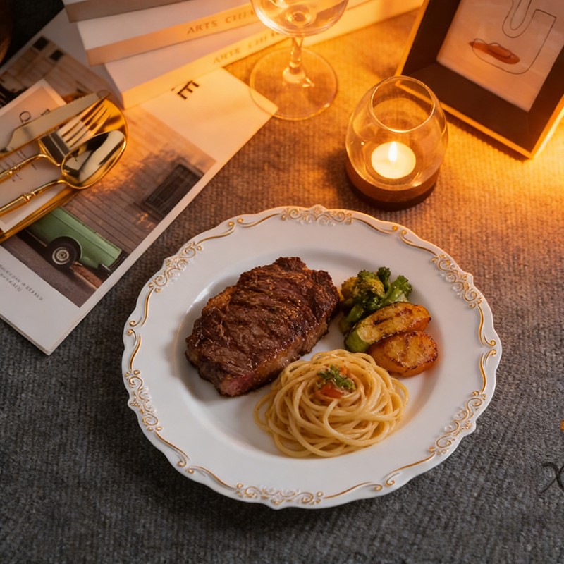 Le bord en dentelle finement gaufré, d'inspiration vintage, ajoute une touche romantique et sophistiquée qui imite la délicate porcelaine, rendant ces assiettes idéales pour les mariages de luxe, les galas chics et les cérémonies officielles.