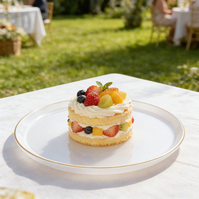 Design élégant blanc et orPied blanc classique avec bordure dorée brillante, élégant et haut de gamme, parfait pour les tables dressées de façon formelle.