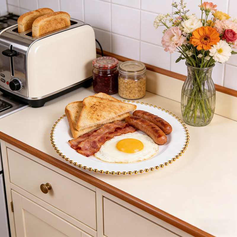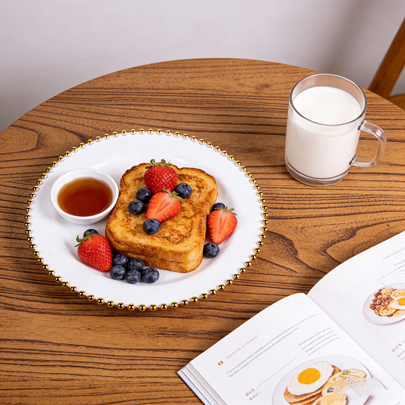 white plate + gold pearl designElegant Beaded Gold Rim Design