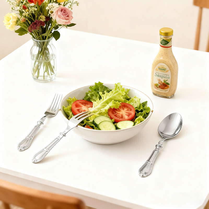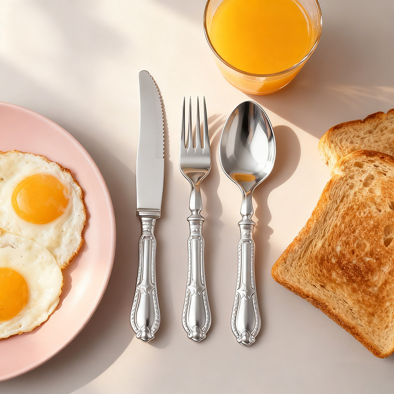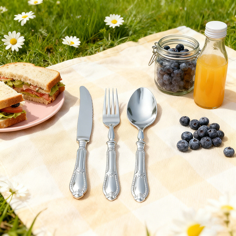 Conception fonctionnelle pratique : Le couteau tranche sans effort rôtis, gâteaux et amuse-gueules ; la fourchette pique fermement salades et fruits de mer ; la cuillère sert soupes et desserts avec aisance, répondant ainsi à tous les besoins culinaires pour les événements et les réunions.