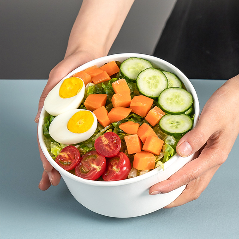 Saladier blanc personnalisé en papier kraft biodégradable avec couvercle